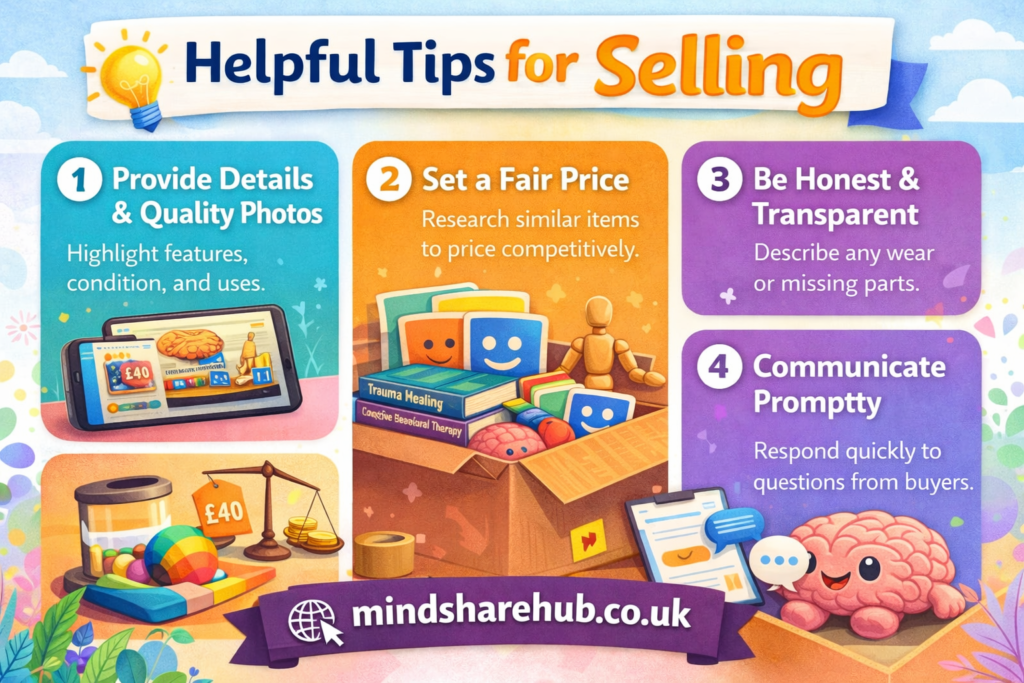 Selling therapy tools online doesn’t have to be complicated. Most of the time, it’s about being clear, honest, and a little thoughtful in how you present your item.